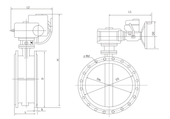 Schematic diagram of d941w-1c electric ventilation butterfly valve: